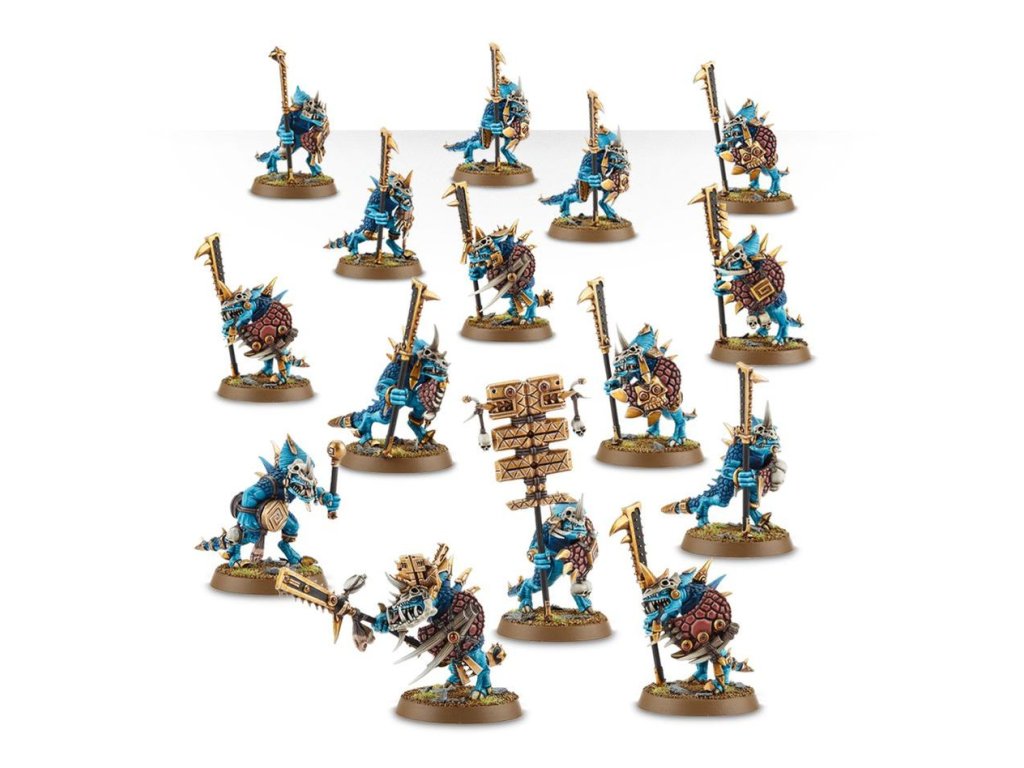 Sada obsahuje 15 nenamalovaných, nesložených, plastových miniatur pro armádu Seraphon v herním systému Age of Sigmar.