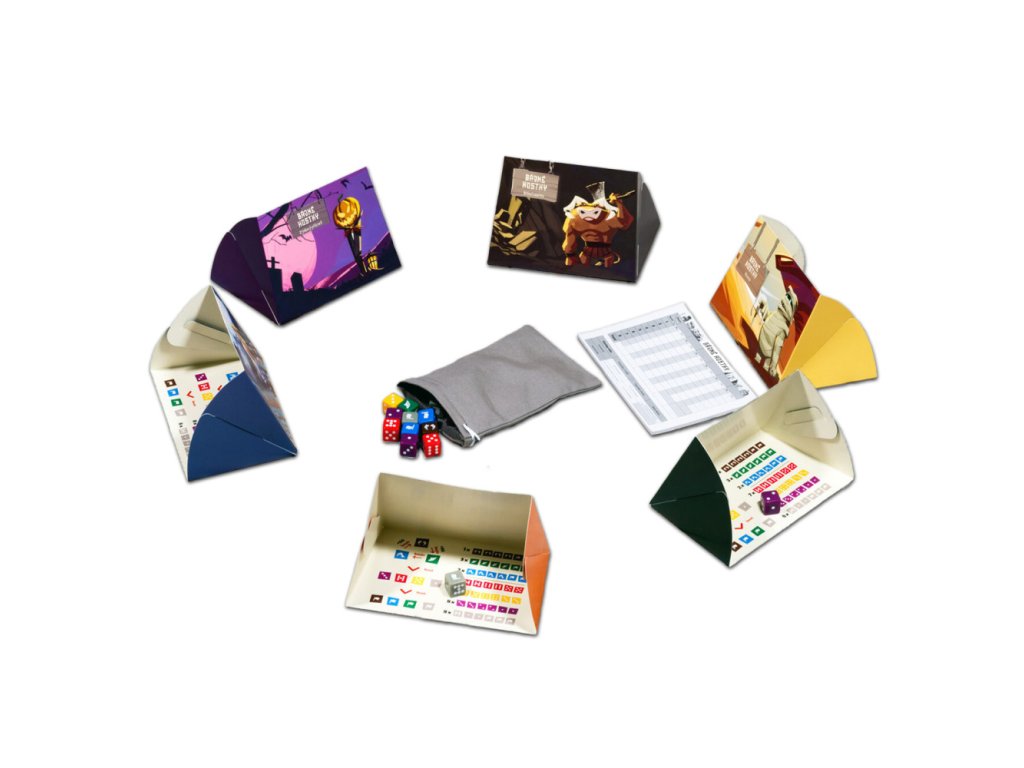 Bájné kostky jsou zábavná štychová hra s kostkami! Na začátku každého kola si hráči vylosují kostky z pytlíku, se kterými budou hrát, a posléze si vsadí, kolik uhrají štychů.