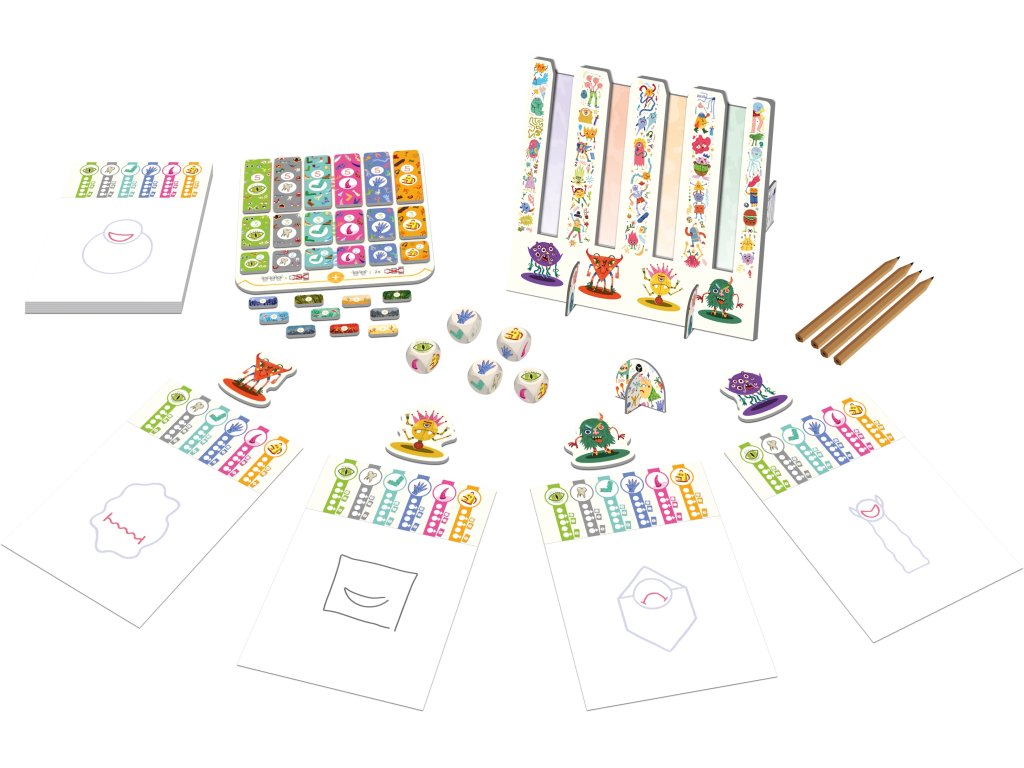 Postupně kreslete svou příšeru a zvyšujte si skóre na svém děsometru vkládáním žetonů příšery (zubů, rukou, nohou...).