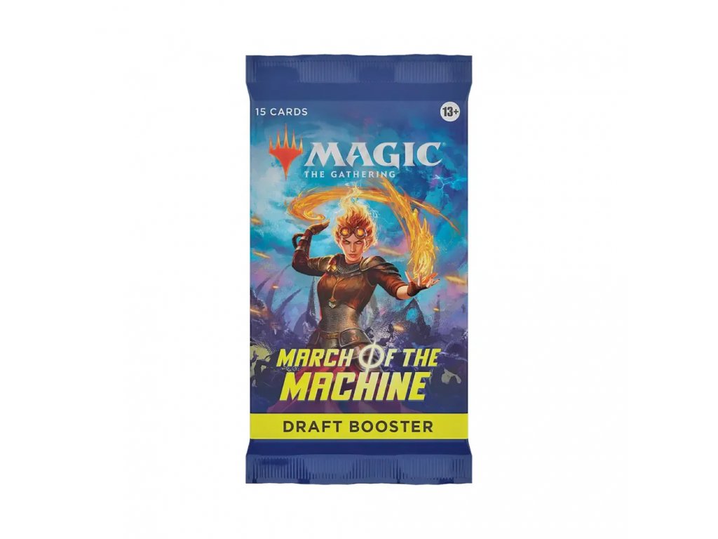 Draft booster obsahuje 15 náhodných karet z edice March of the Machine Magic: the Gathering včetně jedné Rare nebo Mythic karty.