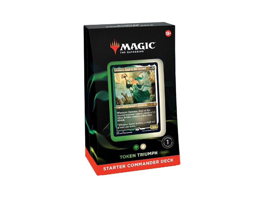 Startovací balíček pro všechny co chtějí začít s Commanderem. Tento je zaměřený na Tokeny a je v bílo zelené barvě.