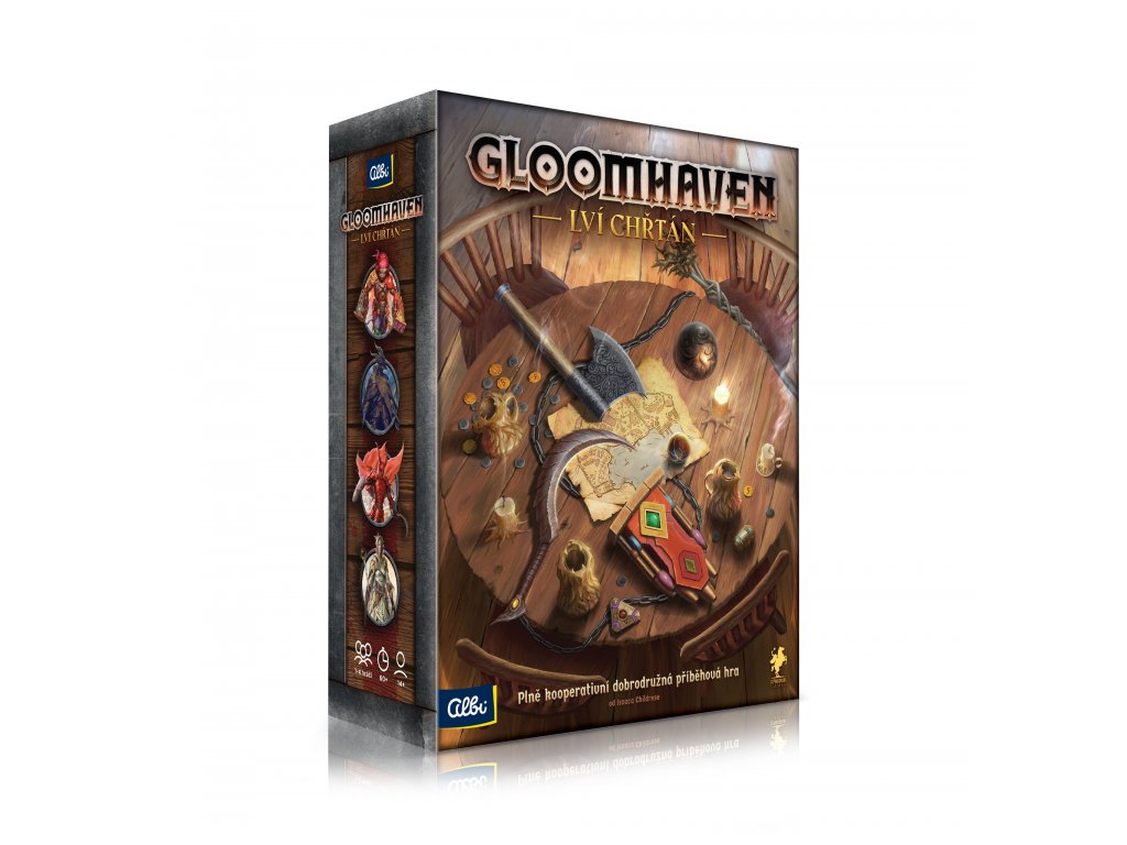 Lví chřtán je samostatně hratelná verze strategické kooperativní hry Gloomhaven, která umožňuje nováčkům hry rovnou začít hrát.