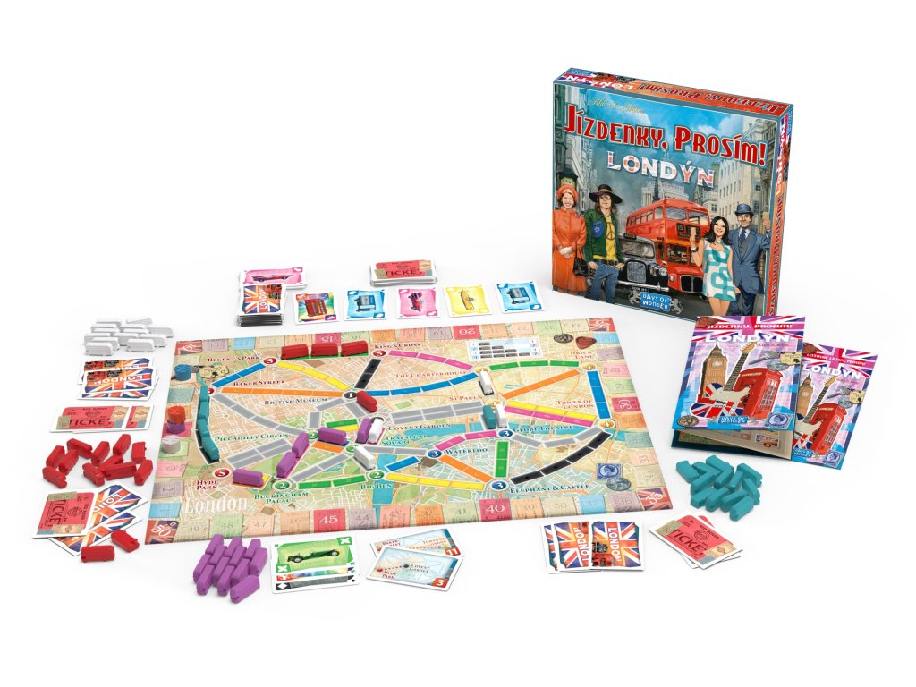Do londýnských ulic se rozlévá pohlcující rytmus rockové hudby ruku v ruce s mladými lidmi oblečenými tak pestře, jak si jen kdo dokáže představit. Váš autobus sviští ulicemi k další zastávce, ale vás ani nenapadne vystoupit, cestování městem dvoupatrovým autobusem je prostě senzační! V této svižné verzi hry Jízdenky, prosím! spolu hráči navzájem soupeří o to, kdo obsadí nejdůležitější autobusové trasy mezi jednotlivými cílovými stanicemi a propojí všechny důležité městské čtvrti v hlavním městě Spojeného království. Elegantně jednoduchá hratelnost této samostatné verze hry Jízdenky, prosím! je ideální jak pro začátečníky, tak pro zkušené hráče. Naučte se pravidla do 3 minut a zažijte zábavu na dlouhé hodiny!