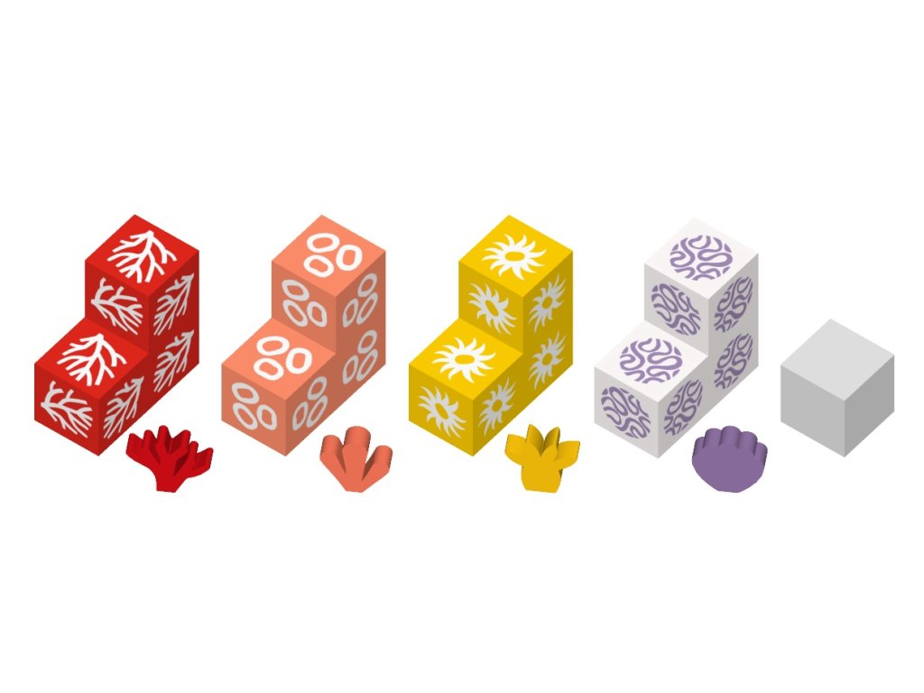 Takto společně – a zároveň proti sobě navzájem – vybudujete křehký, avšak nádherný trojrozměrný útvar připomínající korálový útes, který roste a žije ve spletité, soupeřivé harmonii. Vítězí hráč, který má na konci hry nejvíce symbolů svého korála viditelných shora.
