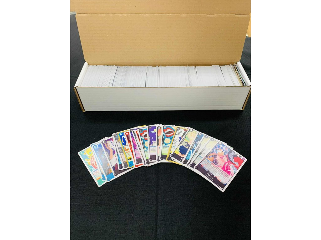 Krabice s tisíci kartami z karetní hry One Piece. Určeno zejména pro začátek hraní, seznámení s hrou.