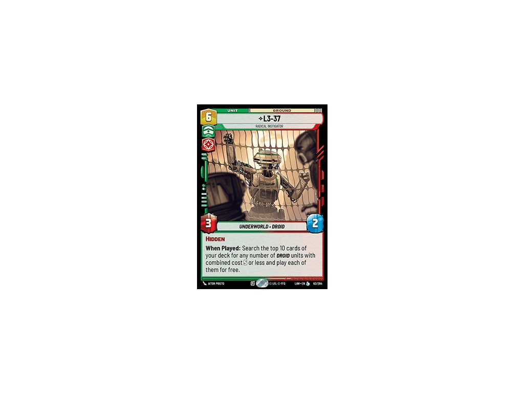 Kusová karta z karetní hry Star Wars: Unlimited z edice A Lawless Time.Doplňkové parametry