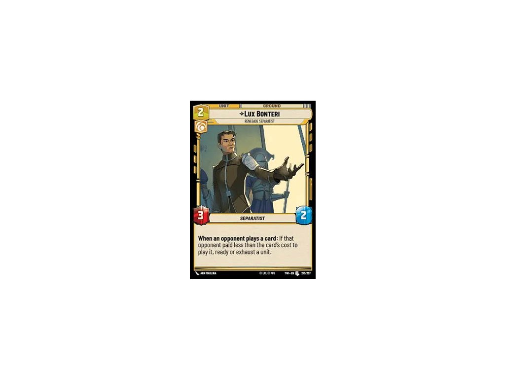 Kusová karta Star Wars: Unlimited z edice Twilight of the Republic.Doplňkové parametry