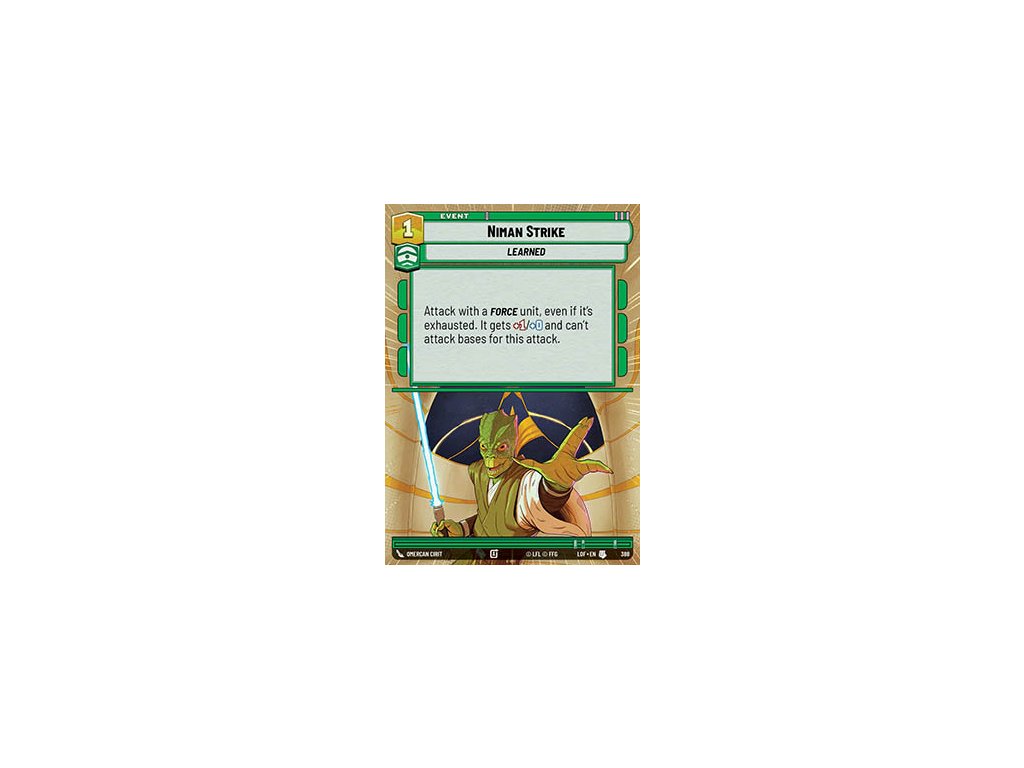 Kusová karta Star Wars: Unlimited z edice Legends of the Force v provedení Hyperspace.