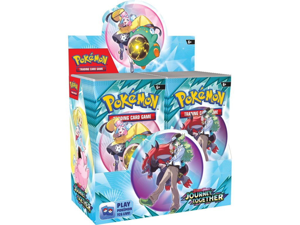 Balení osahuje 36 desetikaretních balíčků z pokémonní sady Scarlet & Violet: Journey Together.