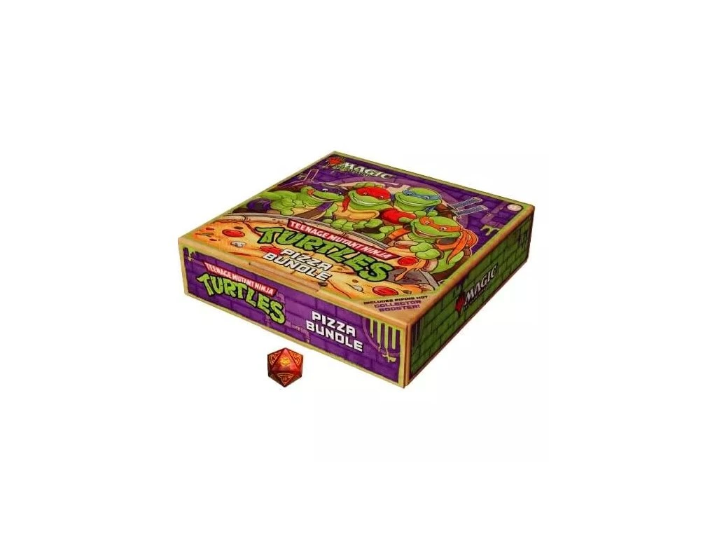 Magic the Gathering Teenage Mutant Ninja Turtles Pizza Bundle je krabice, která obsahuje boostery a zajímavé MTG doplňky. Užijte si kousek zábavy s kartami s tématikou pizzy. Balení obsahuje: 9 Play Boosterů, 1 Collector Booster, 15 foil Basic Lands, 15 Foil karet, 1 krabičku a oversized spindown a další. Také obsahuje 2 ze 6 promo karet.