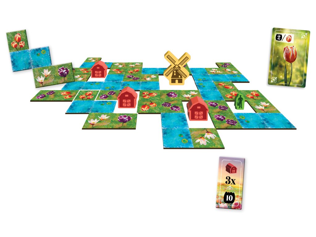 Jako ambiciózní zahradníci soutěžíte o to, kdo vypěstuje nejrozmanitější směsici tulipánů. Pečlivě vybírejte dílky a strategicky rozmisťujte ikonické větrné mlýny, robustní stodoly a pilné pracovníky, abyste vytvořili harmonickou a hodnotnou krajinu.