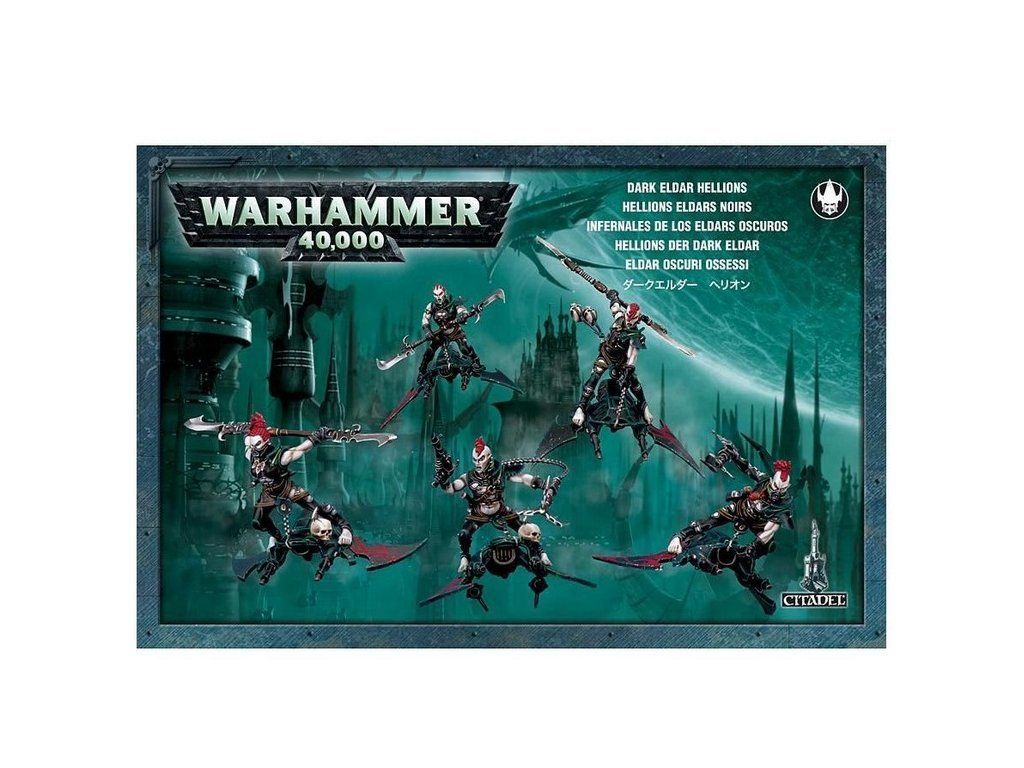 Sada obsahuje 5 plastových modelů Dark Eldar Hellions. Modely a jednotlivé části prodávané jako součást tohoto balení nejsou nabarvené ani zkompletované.